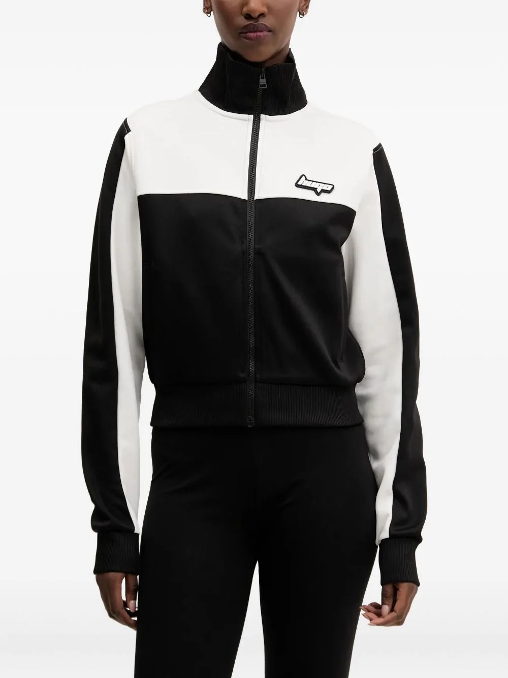 colour-block zip-up sweatshirt Highlights - Black - Colour-block panelling - Front zip fastening - High neck - Logo applique - Ribbed cuffs Imported Composition Polyester 70%, Cotton 30% Washing instructions Machine Wash
