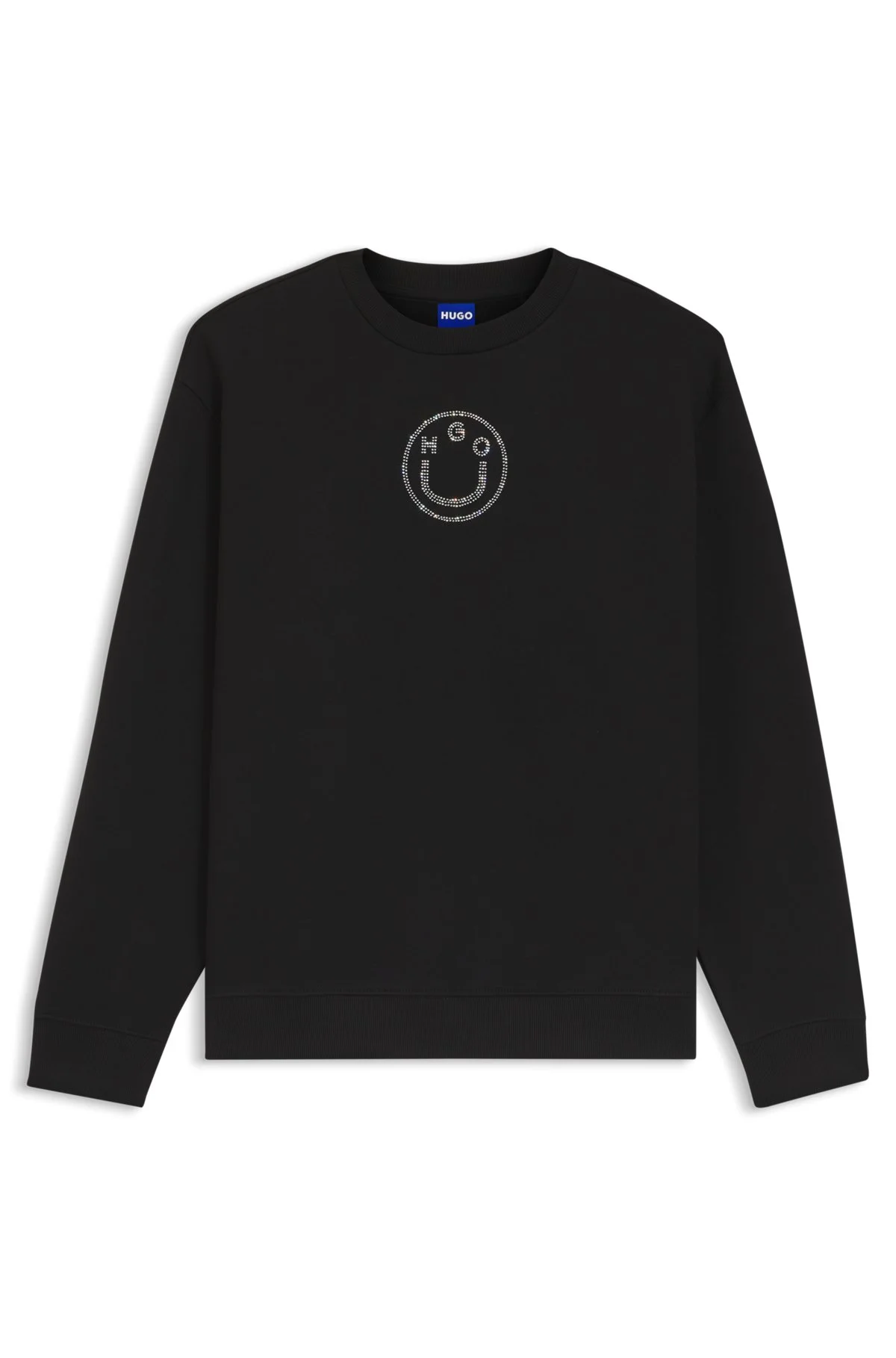 DETAILS In soft cotton with a brushed inner, this HUGO Womenswear sweatshirt adds impact with its sparkling Happy HUGO logo. Easy-wear relaxed fit. Regular fit Neckline: Crew neck Long sleeves Ribbed cuffs Classic Crew_B_2 - 50555795 QUALITY & CARE INSTRUCTIONS Machine Wash Cold Gentle Do Not Dry Clean Do Not Tumble Dry Material: 100% Cotton Iron Low Heat Do Not Bleach