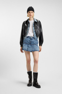 DETAILS Autene-1_B - 50553053 With a cropped fit and embossed logo at the back, this HUGO Womenswear jacket adds creativity to everyday looks. Synthetic coated fabric. Dropped shoulders. Synthetic coated fabric, sometimes referred to as faux leather, is a fabric designed to resemble real leather, and/or display a matte, glossy, smooth, or textured, coated appearance. QUALITY & CARE INSTRUCTIONS Cold, gentle machine wash; reduced spin speed. Do Not Tumble Dry Do Not Dry Clean Do Not Bleach Quality: 100% Polyester, Lining: 100% Polyester Do Not Iron