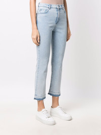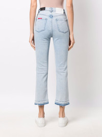 cropped straight-leg jeans light blue cotton blend mid-rise logo patch to the rear belt loops concealed front fastening classic five pockets straight leg cropped Imported Composition Cotton 68%, Recycled Polyester 16%, Recycled Cotton 15%, Spandex/Elastane 1% SIZE & FIT Model measurements Height 5 ft 10 in(1.79 m) Bust/Chest 33.07 in(84 cm) Hips 35.82 in(91 cm) Waist 24.01 in(61 cm) FittingInformation This piece fits true to size. We recommend you get your regular size Designed to be fitted at the waist and through the thigh, loose from the knee Made with a mid-weight stretch fabric Washing instructions Machine Wash