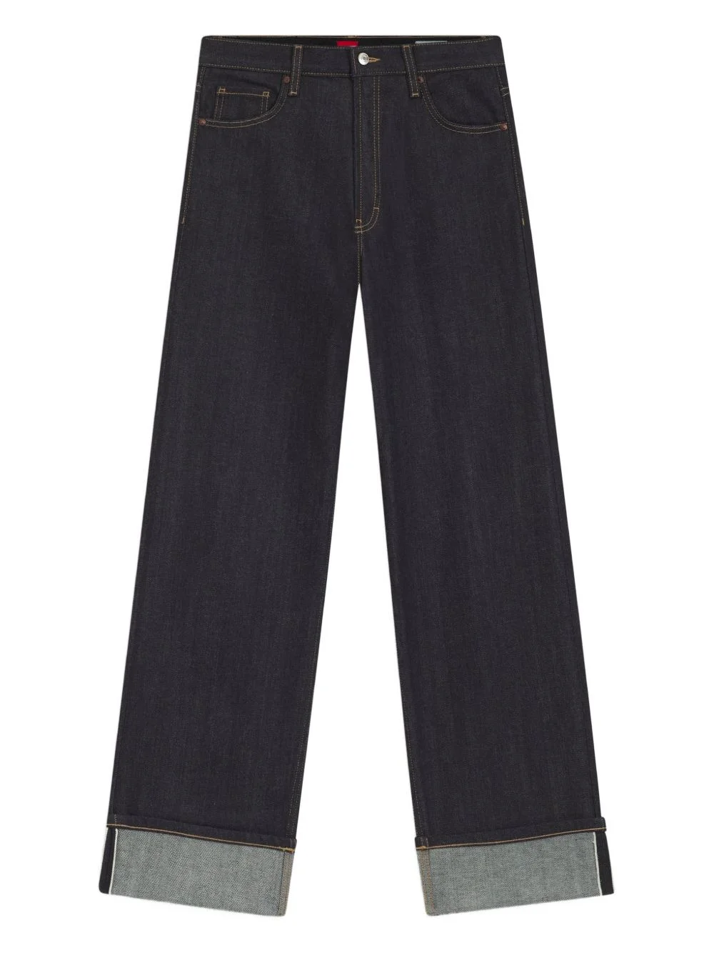 cuffed jeans Highlights - Dark blue - Cuffed hem - Contrast topstitching - Belt loops - Five pockets Imported Composition Outer: Cotton 98%, Spandex/Elastane 3% Lining: Cotton 100% Washing instructions Machine Wash