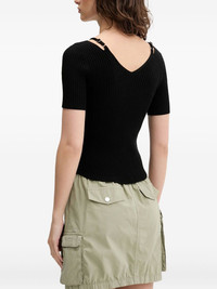 cut-out ribbed top Highlights - Black - Short sleeves - Straight hem Imported Composition Viscose 76%, Polyamide 24% Washing instructions Read Manufacturer Guidelines