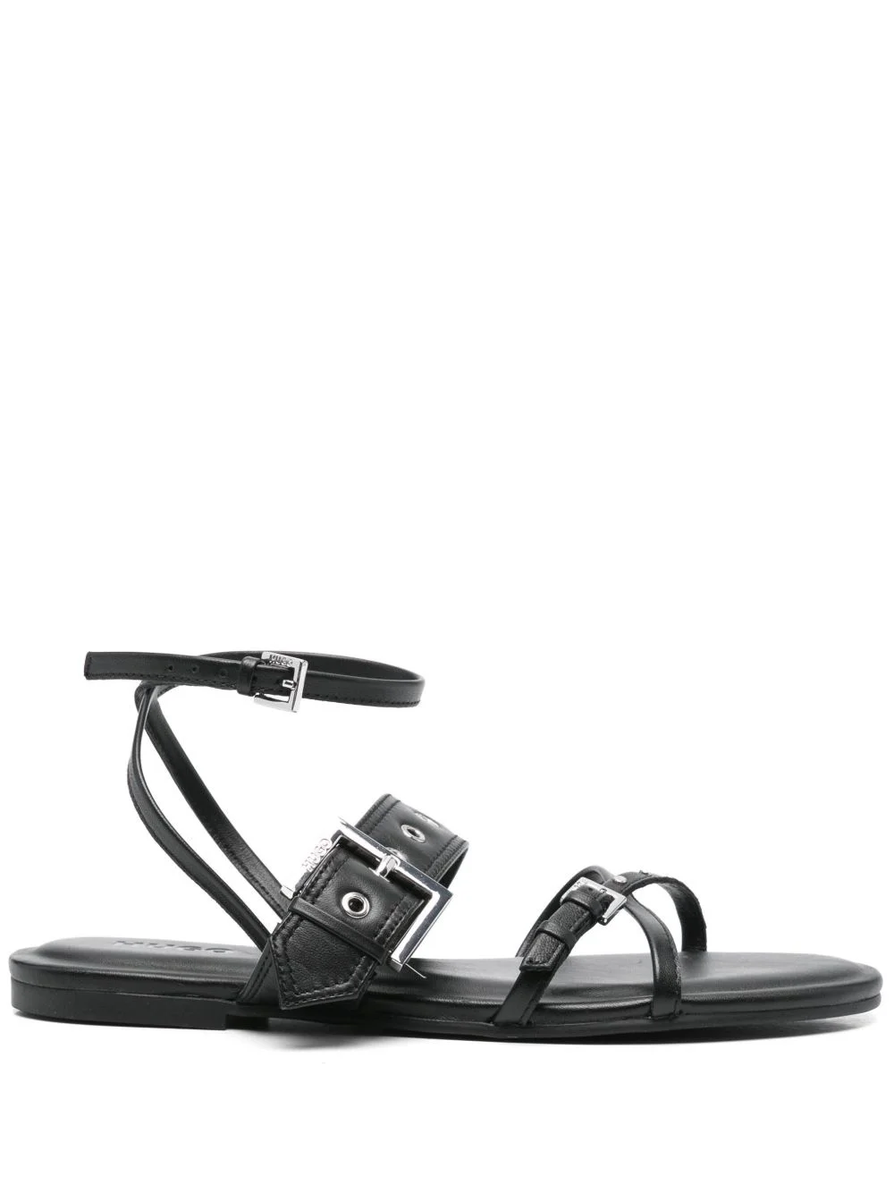 eyelet-detail sandals Highlights - Black - Buckle-strap fastening - Multi-way strap design - Flat sole - Stud detailing Imported Composition Outer: Leather 100% Lining: Leather 100% Sole: Rubber 100%