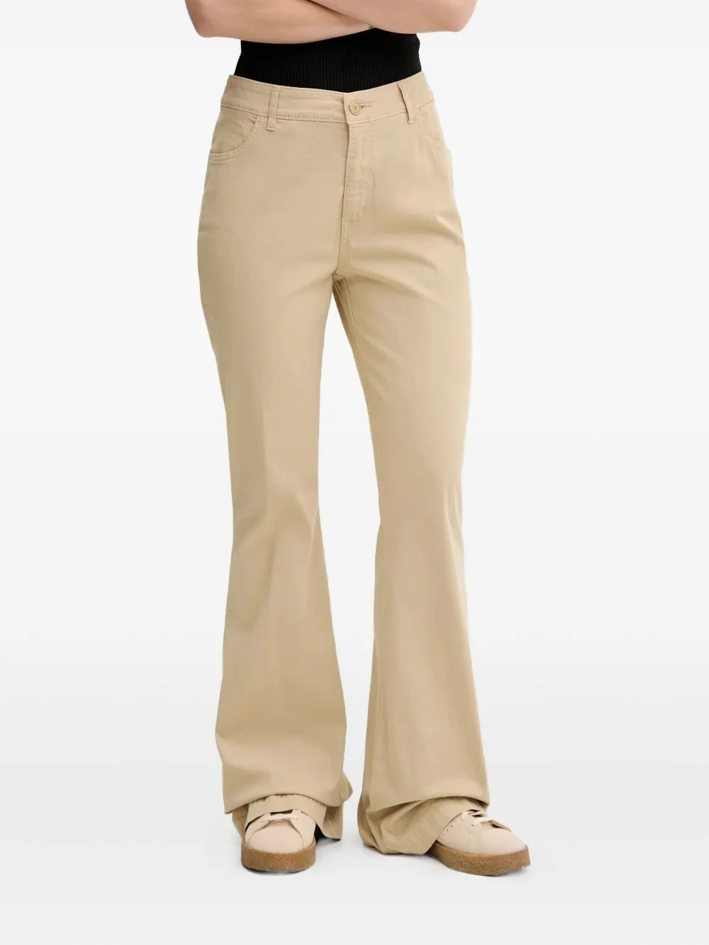 flared jeans Highlights - Beige - Back welt pocket - Front pockets - Button fastening - Flared leg Imported Composition Outer: Cotton 98%, Spandex/Elastane 2% Lining: Cotton 100% Washing instructions Machine Wash