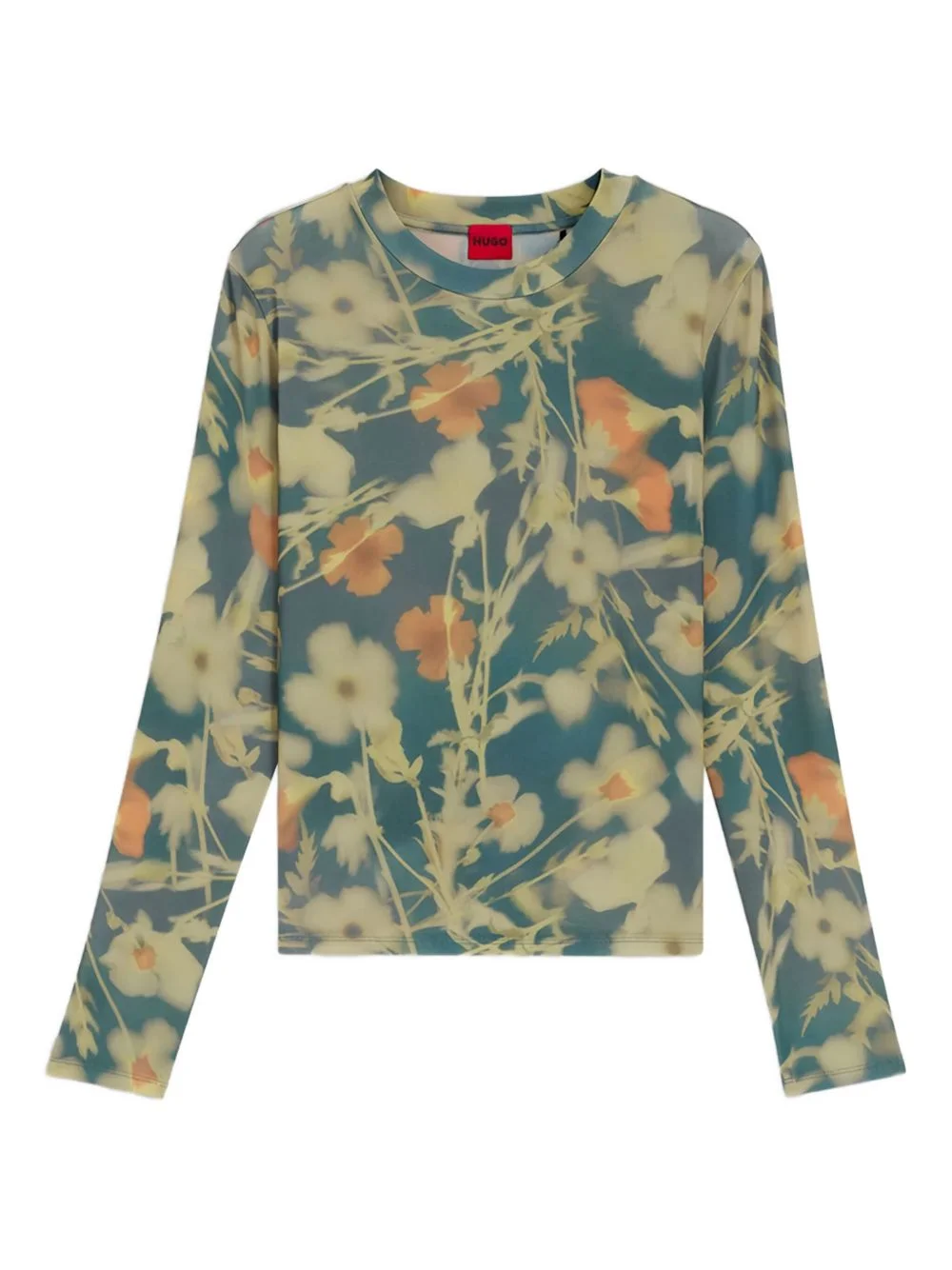 floral long-sleeve top Highlights - Blue/multicoloured - Floral print - Round neck - Long sleeves Imported Composition Polyester 87%, Spandex/Elastane 13% Washing instructions Machine Wash