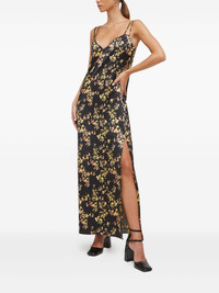 floral slit maxi dress Highlights - Black - Floral print - Spaghetti straps - V-neck - Side slit Imported Composition Recycled Polyester 70%, Polyester 30% Washing instructions Read Manufacturer Guidelines