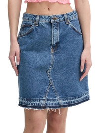 frayed-hem denim mini skirt Highlights - Blue - Frayed hem - A-line shape - Button fastening - Five-pocket design Imported Composition Lining: Polyester 65%, Cotton 35% Outer: Cotton 100% Washing instructions Read Manufacturer Guidelines
