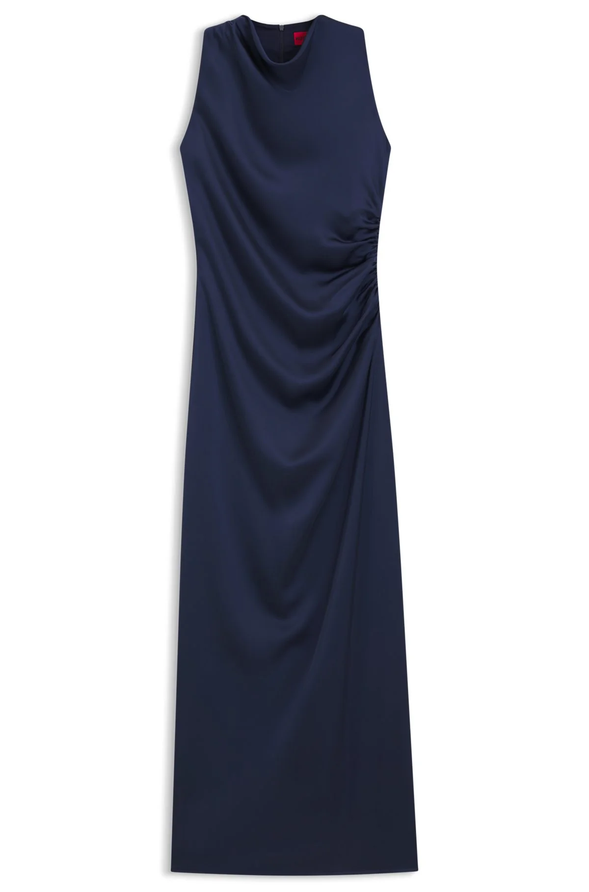 DETAILS With a sharp fit and maxi length, this HUGO Womenswear dress is effortlessly elegant. Soft satin with feminine gathering details. sharp fit Fastening top: Concealed closure Sleeveless Side slit Partially lined Fit back length: 146 cm (57 inches) Kesina-1 - 50553026 QUALITY & CARE INSTRUCTIONS Iron Low Heat Do Not Bleach Material: 100% Polyester (51% recycled), Lining: 100% Polyester Machine Wash Cold Gentle Do Not Tumble Dry Reduced Dry Clean