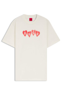 SIZE AND FIT The model wears a size S and is 5'10" tall with a, 32" chest, 24" waist and 35" hips. DETAILS Add impact to casual looks with the heart-themed branding of this HUGO Womenswear T-shirt. Relaxed fit. Soft cotton jersey. Relaxed fit Neckline: Crew neck Short sleeves Standard length Vintage Tee_22 - 50561164 QUALITY & CARE INSTRUCTIONS Do Not Dry Clean Iron Low Heat Do Not Tumble Dry Do Not Bleach Material: 100% Cotton Machine Wash Cold Gentle