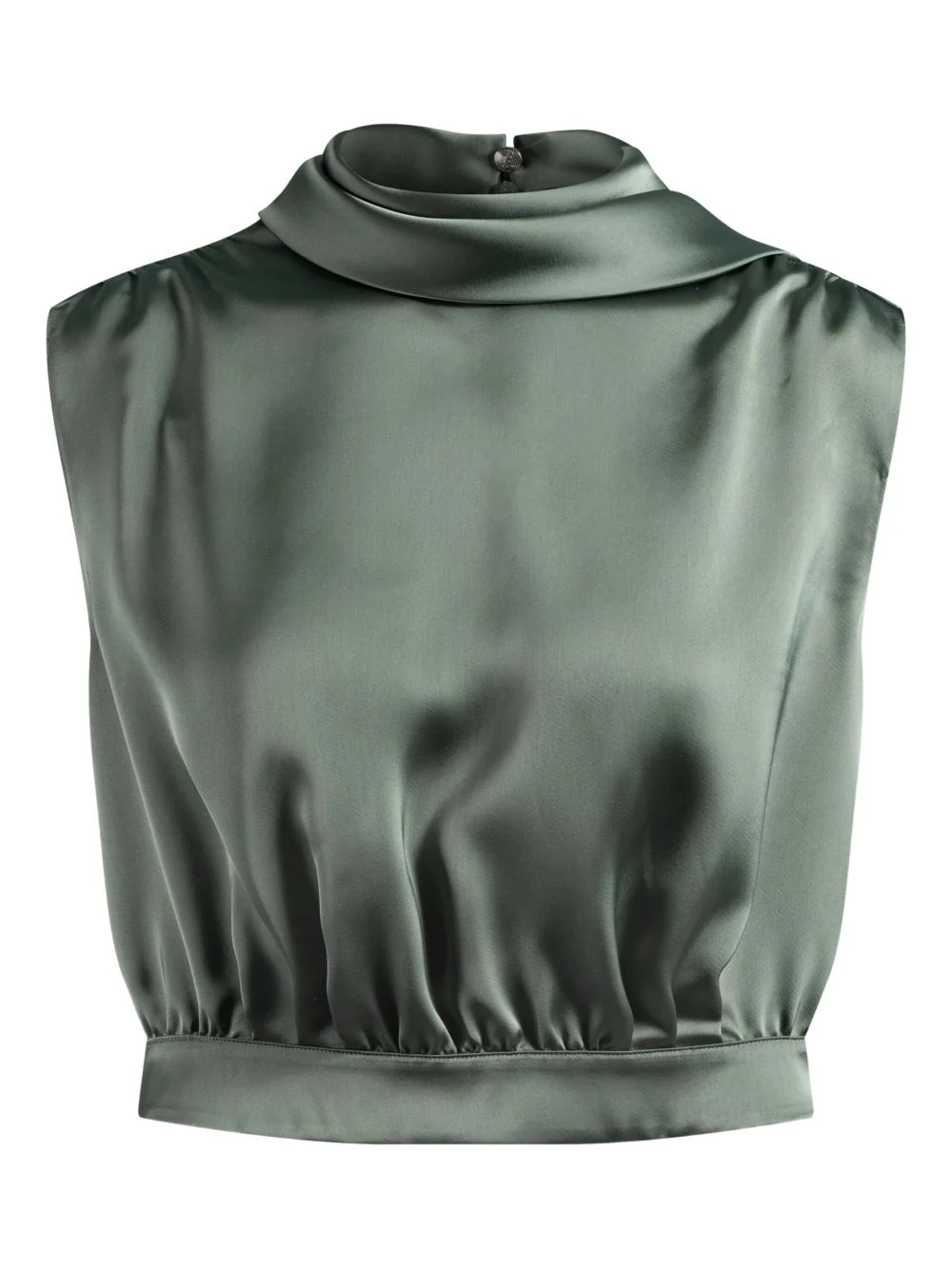 high-neck crop top Highlights - Green - High neck - Sleeveless - Draped detail - Straight hem - Concealed zip fastening Imported Composition Recycled Polyester 100% Washing instructions Read Manufacturer Guidelines