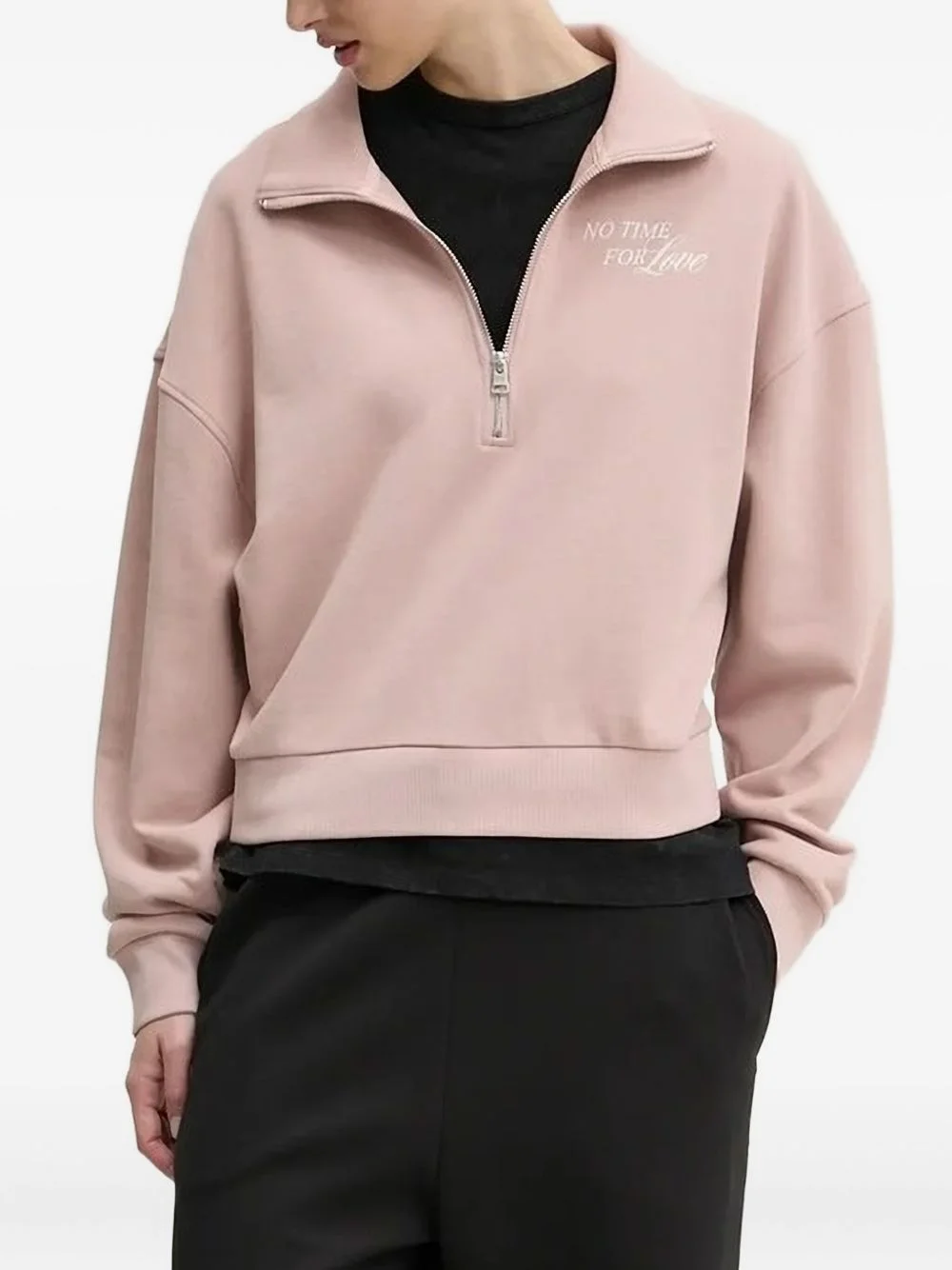 high-neck half-zip sweatshirt Highlights - Pink - Half-zip fastening - High neck - Printed lettering - Cotton - Long sleeves Imported Composition Cotton 100% Washing instructions Read Manufacturer Guidelines