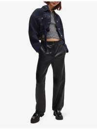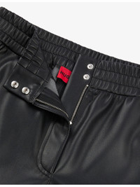 PRODUCT DETAILS - HUGO faux-leather trousers - 100% faux-leather - Exposed button and concealed zip-fly fastening at front - Regular fit, high rise, elasticated waist, straight leg - Wipe with a clean, dry cloth - True to size - Midweight, non-stretch Ref: R04252800
