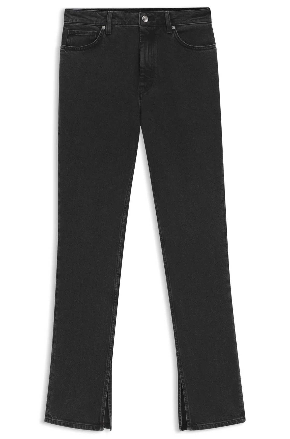 SIZE AND FIT The model wears a size 27/32 and is 5'10" tall with a, 32" chest, 24" waist and 35" hips. DETAILS Gitria_1 - 50546503 In a slim fit with slits at the hems, these high-waisted HUGO Womenswear jeans create a cutting-edge profile. Comfort-stretch gray denim. Slim fit High rise Pockets bottom front: Ticket pocket Pockets bottom back: Patch pocket QUALITY & CARE INSTRUCTIONS Machine Wash Cold Gentle Iron Medium Heat Do Not Tumble Dry Do Not Dry Clean Quality: 66% Cotton, 33% Lyocell, 1% Elastane, pocketing: 100% Cotton Do Not Bleach