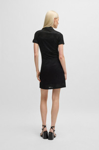 SIZE AND FIT The model wears a size S and is 5'10" tall with a, 32" chest, 24" waist and 35" hips. DETAILS Nofina - 50537774 With a zipped placket featuring a stacked-logo detail, this HUGO Womenswear dress is crafted in a sheer jacquard knit with a strappy slip underneath. QUALITY & CARE INSTRUCTIONS Do Not Bleach Cold, gentle machine wash; reduced spin speed. Do Not Tumble Dry Do Not Dry Clean Quality: 80% Viscose, 20% materialcode.PBT Iron Low Heat