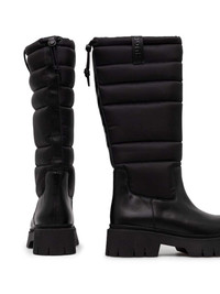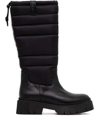 Kris boots Highlights - Black - Top drawstring fastening - Logo pull-tab - Quilted panels - Knee-high Imported Composition Outer: Calf Leather 100%, Polyester 100% Sole: Thermoplastic Polyurethane (TPU) 100% Lining: Polyester 100%