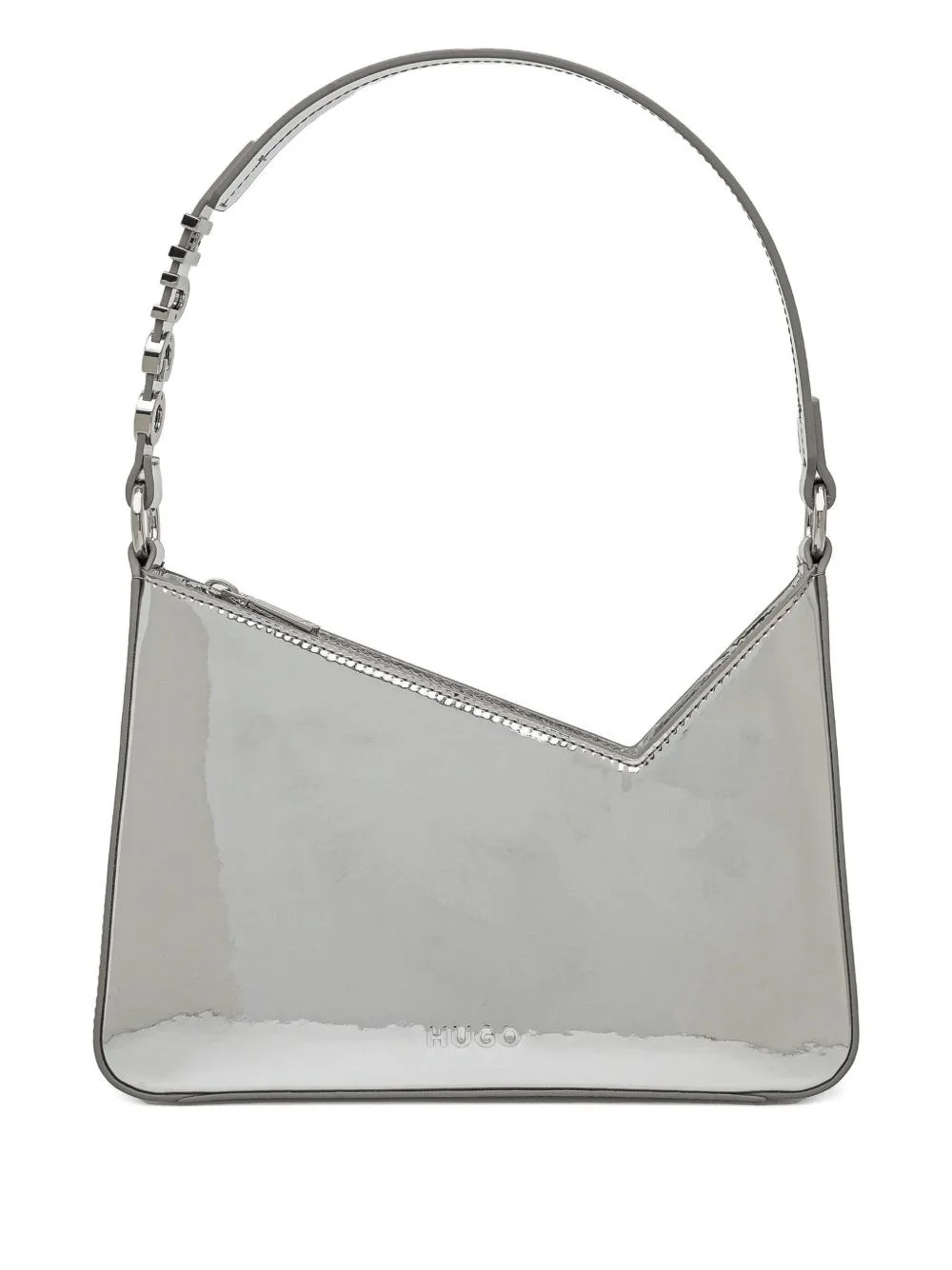laminated shoulder bag Highlights - Silver-tone - Top zip fastening - Single shoulder strap - Internal card slot - Silver-tone logo lettering Imported Composition Outer: Recycled Polyurethane 62%, Polyester 30%, Polyurethane 8% Lining: Polyester 100% SIZE & FIT Measurement DEPTH 2.36 in(6 cm) HEIGHT 6.69 in(17 cm) WIDTH 9.44 in(24 cm)