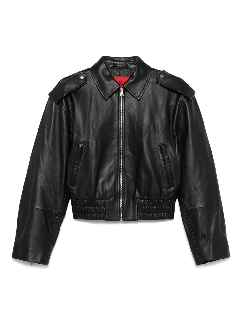 leather bomber jacket Highlights - Black Imported Composition Lining: Recycled Polyester 100% Outer: Lamb Skin 100%