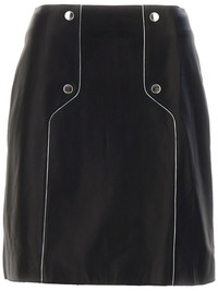 leather mini skirt Highlights - Black - Lambskin - Panelled design - Rear zip fastening - High-waisted - Piped-trim detailing - Logo print to the side - Stud detailing - A-line - Straight hem - Above-knee length Made in Italy Composition Lining: Polyester 100% Outer: Lambskin 100%