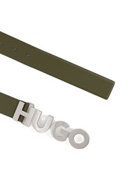 logo-buckle belt Highlights - Olive green - Metal logo buckle - Adjustable strap - Sleek design - Smooth finish Imported Composition Calf Leather 100% SIZE & FIT Measurement WIDTH 1.37 in(3.5 cm)