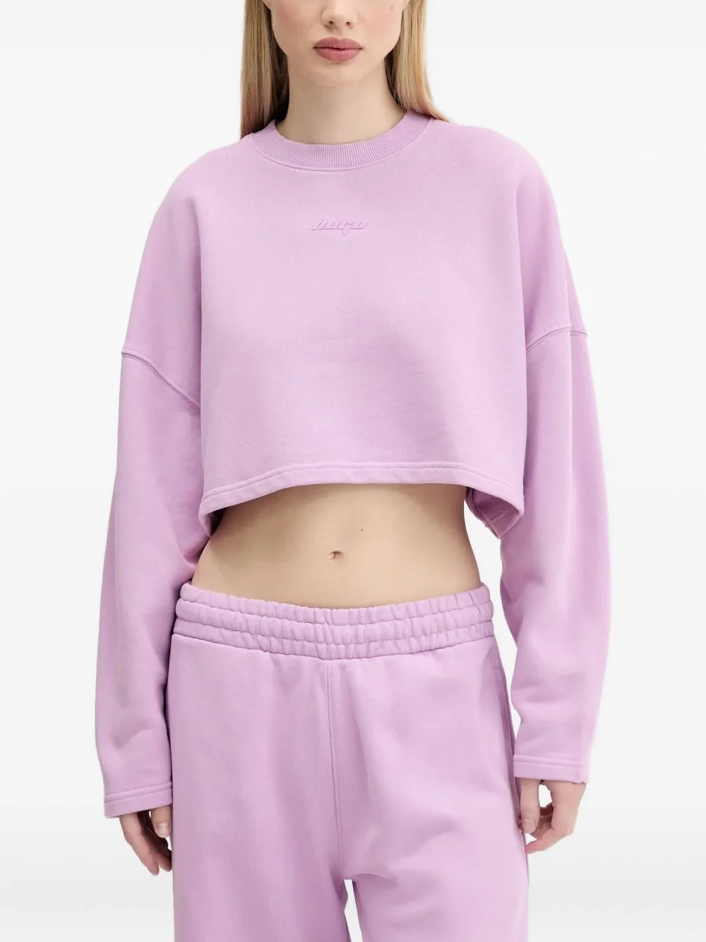 logo-detail cropped sweatshirt Highlights - Lilac - Crew neck - Cropped hem - Long sleeves - Rubberised logo Imported Composition Cotton 100% Washing instructions Read Manufacturer Guidelines