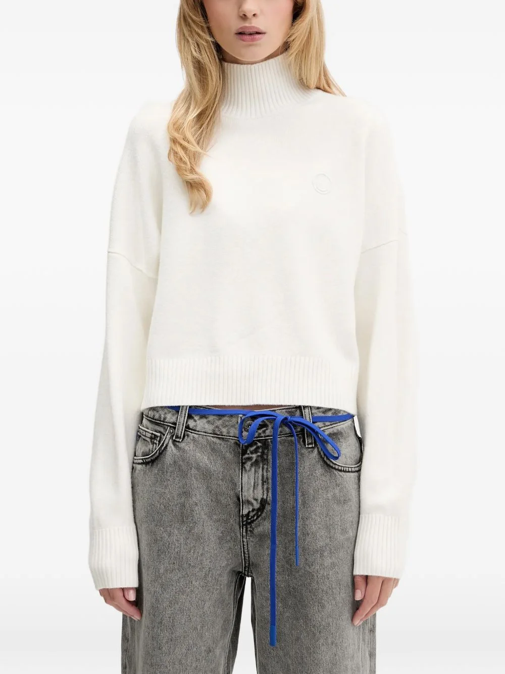 logo-detail long-sleeve sweater Highlights - White - Roll neck - Long sleeves - Ribbed hem - Ribbed cuffs Imported Composition Viscose 50%, Polyester 27%, Polyamide 23% Washing instructions Read Manufacturer Guidelines