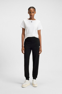 SIZE AND FIT The model wears a size S and is 5'9" tall with a, 31" chest, 24" waist and 35" hips. DETAILS Nelfinia - 50522417 Signature tracksuit bottoms in a straight fit by HUGO Womenswear. This regular-rise pair is crafted in cotton terry with a stacked logo. Regular fit Regular rise Elastic Waistband Cuffed leg Pockets bottom front: Side pockets QUALITY & CARE INSTRUCTIONS Quality: 100% Cotton Do Not Bleach Iron Low Heat Do Not Dry Clean Do Not Tumble Dry Machine Wash Cold Gentle