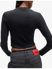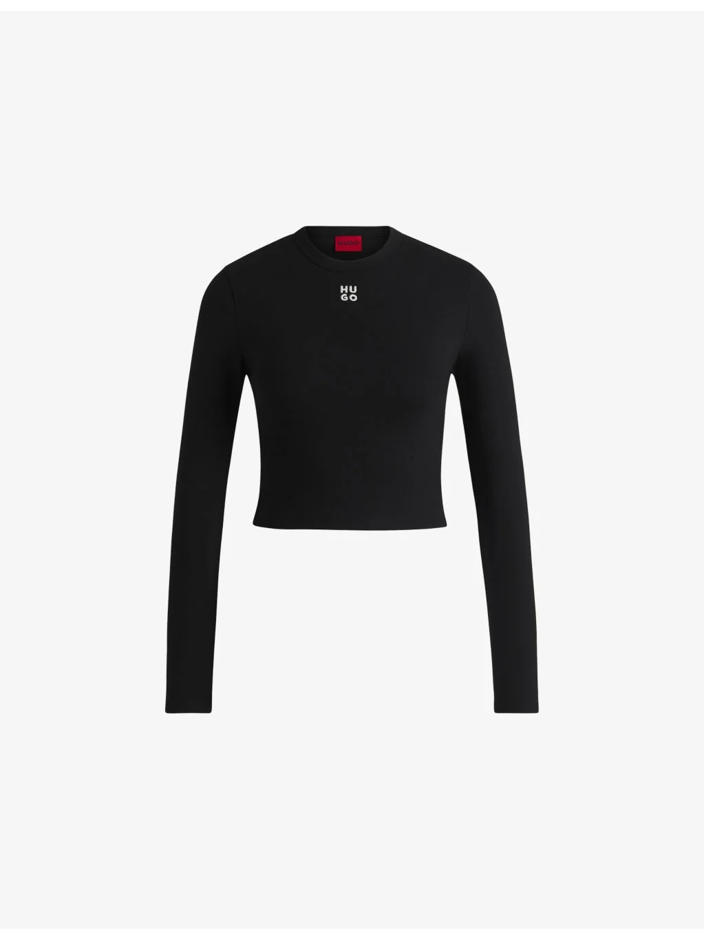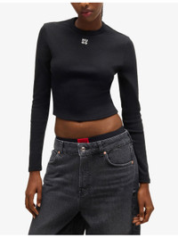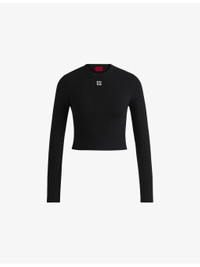 PRODUCT DETAILS - HUGO stretch cotton-blend top - 66% cotton, 29% polyester, 5% elastane - Slim fit, round neck, logo embroidery at the chest, long sleeves, cropped - Machine wash at 30°C - True to size - Model is 5ft 9in/1.75m and wears a size UK 8 - Lightweight, slight stretch Ref: R04252850