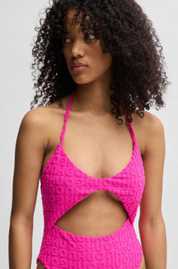 LOGO-PATTERN CUTOUT SWIMSUIT IN TOWELING JERSEY