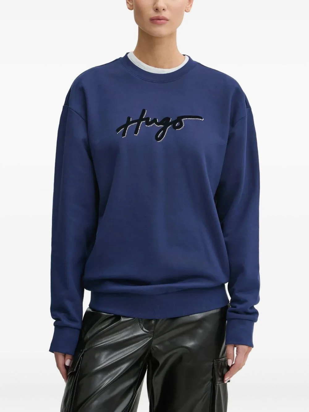 logo-print crew-neck sweatshirt Highlights - Dark blue - Crew neck - Long sleeves - Logo detail - Tonal stitching Imported Composition Fabric 100% Washing instructions Read Manufacturer Guidelines