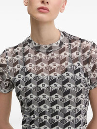 logo-print gathered maxi dress Highlights - Black - Mesh fabric - Logo pattern - Gathered detail - Short sleeves - Round neck Imported Composition Outer: Polyester 94%, Elastane 6% Lining: Polyamide 67%, Elastane 33% Washing instructions Read Manufacturer Guidelines