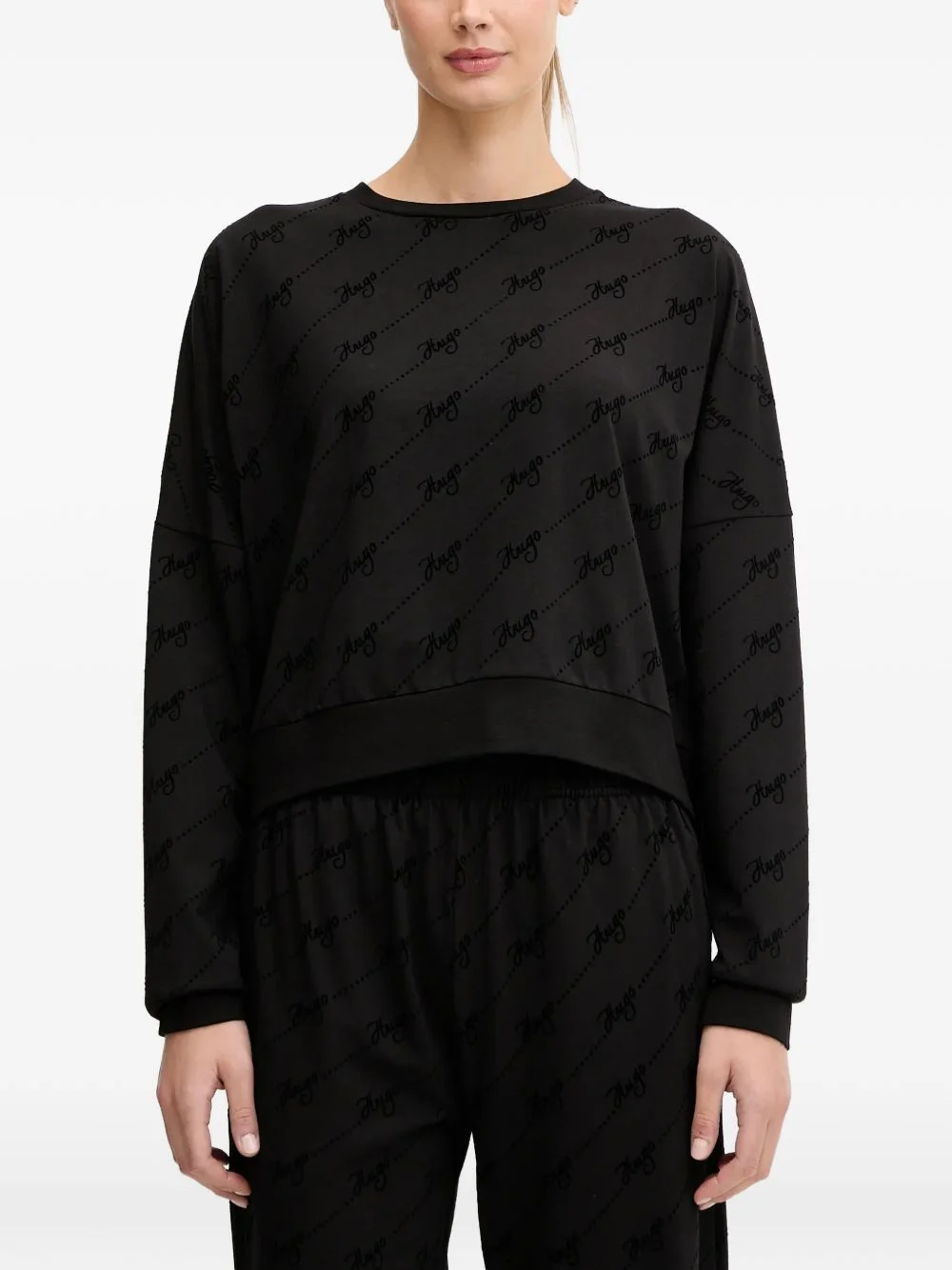 long-sleeve logo sweater Highlights - Black - Round neck - Long sleeves - Ribbed hem - Ribbed cuffs Imported Composition Cotton 100% Washing instructions Read Manufacturer Guidelines