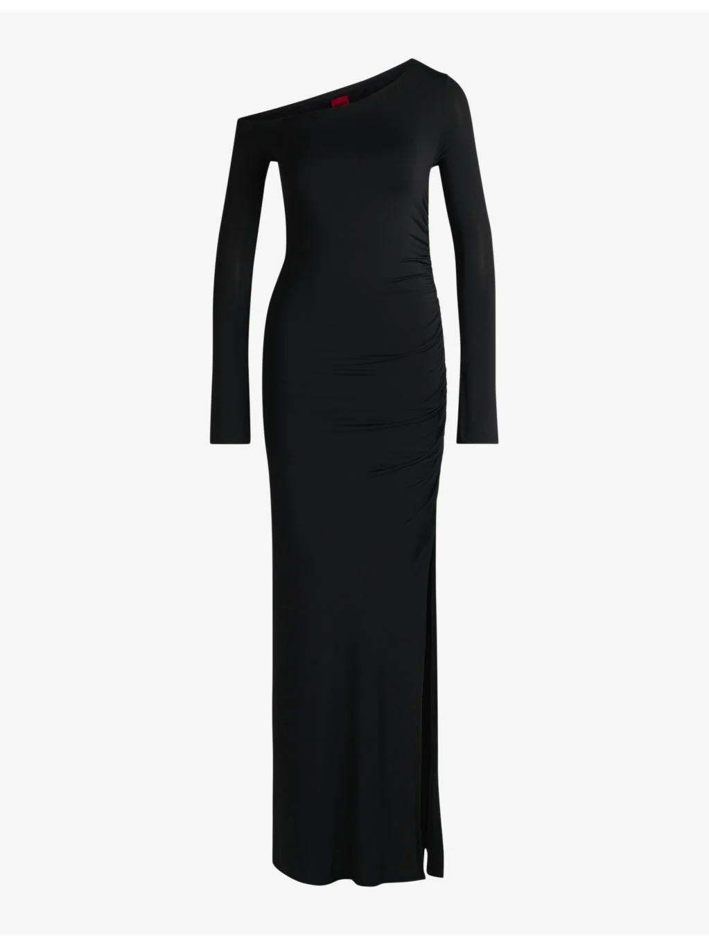 PRODUCT DETAILS - HUGO stretch-jersey maxi dress - 95% viscose, 5% elastane - Slips on - Slim fit, off-the-shoulder design, long sleeves, split hem - Machine wash mild - True to size - Lightweight, slight stretch Ref: R04285505