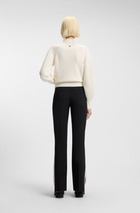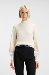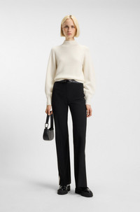 SIZE AND FIT The model wears a size S and is 5'10" tall with a, 32" chest, 24" waist and 35" hips. DETAILS With its loose fit and rolled neckline, this HUGO Womenswear sweater is blended with wool and cashmere for everyday luxury. Ribbed structure. Stacked-logo rivet. Relaxed fit Neckline: Mock Neck Long sleeves Sorellasio - 50548292 QUALITY & CARE INSTRUCTIONS Hand Wash Only Do Not Bleach Reduced Dry Clean Quality: 47% Wool, 38% Viscose, 10% Polyamid, 5% Cashmere Iron Low Heat Do Not Tumble Dry
