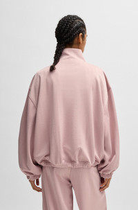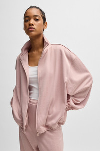 SIZE AND FIT The model wears a size S and is 5'8" tall with a, 29" chest, 24" waist and 35" hips. DETAILS Dicole_B - 50531182 A modern jacket in an oversize fit by HUGO Womenswear. This top is knitted with a logo jacquard all over. Oversized fit Fastening top: Zip closure Long length QUALITY & CARE INSTRUCTIONS Iron Low Heat Machine Wash Cold Gentle Quality: 100% Polyester, Lining: 100% Polyester Do Not Bleach Do Not Tumble Dry Do Not Dry Clean