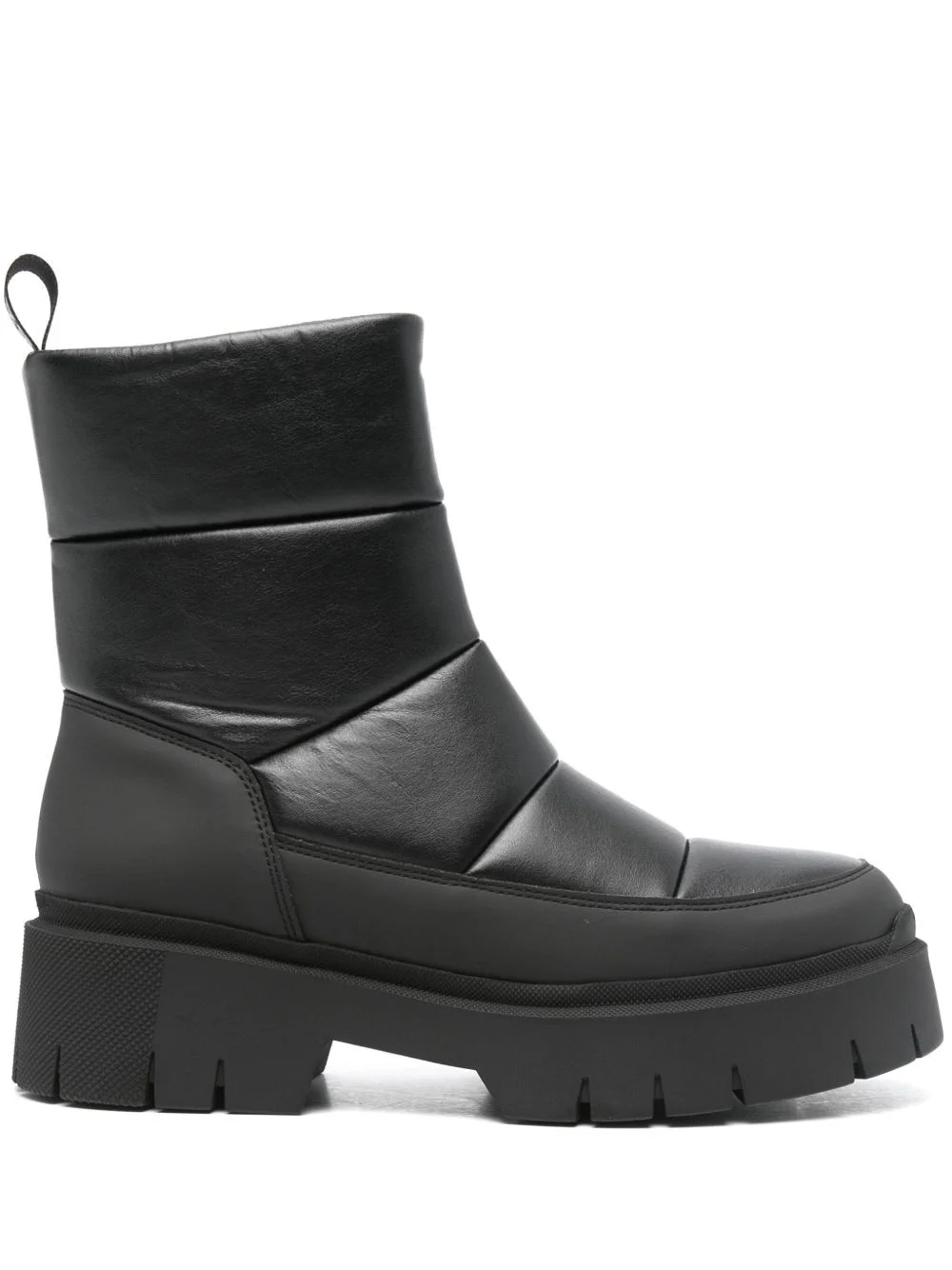 padded faux-leather boots Highlights - Black - Faux leather - Padded design - Quilted - Concealed side zip fastening - Ankle-length - Pull-tab at the heel - Round toe - Branded insole - Full lining - Chunky rubber lug sole Imported Composition Outer: Polyester 55%, Polyurethane 45% Lining: Polyurethane 50%, Polyamide 50% Sole: Thermoplastic Polyurethane (TPU) 100% SIZE & FIT Measurement CIRCUMFERENCE 8.66 in(22 cm) HEEL 2.16 in(5.5 cm) HEIGHT 5.9 in(15 cm) Sole height 1.57 in(4 cm)