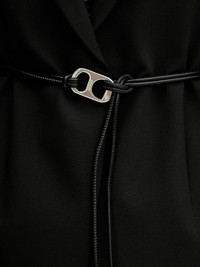 Padded-shoulder belted blazer Highlights - Black - Padded shoulders - Notched lapels - Belted waist - Self-tie belt - Ring detail belt Imported Composition Polyester 64%, Viscose 31%, Elastane 5% Washing instructions Read Manufacturer Guidelines