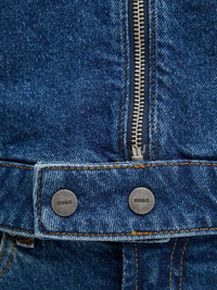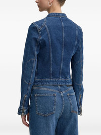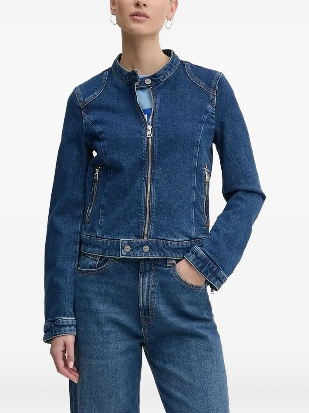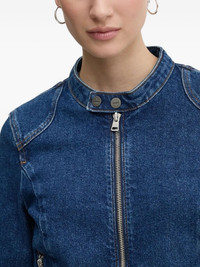 panelled denim jacket Highlights - Dark blue - Front zip fastening - Panelled design - High neck - Long sleeves - Buttoned cuffs Imported Composition Outer: Cotton 99%, Elastane 1% Lining: Polyester 65% Cotton 35% Washing instructions Read Manufacturer Guidelines