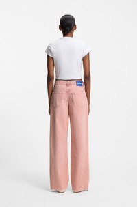 SIZE AND FIT The model wears a size 27/32 and is 5'8" tall with a, 31" chest, 23" waist and 34" hips. DETAILS Cut in rigid pink denim with a super-soft feel, these HUGO Womenswear jeans create a fresh look. Loose fit. Mid-rise waistband. Frayed hems. baggy fit Mid rise Button and zip closure Wide leg Pockets bottom back: Patch pocket Standard length Gamala_2_B - 50554725 QUALITY & CARE INSTRUCTIONS Machine Wash Cold Gentle Do Not Dry Clean Material: 100% Cotton, pocketing: 65% Polyester, 35% Cotton Do Not Tumble Dry Iron Medium Heat Do Not Bleach