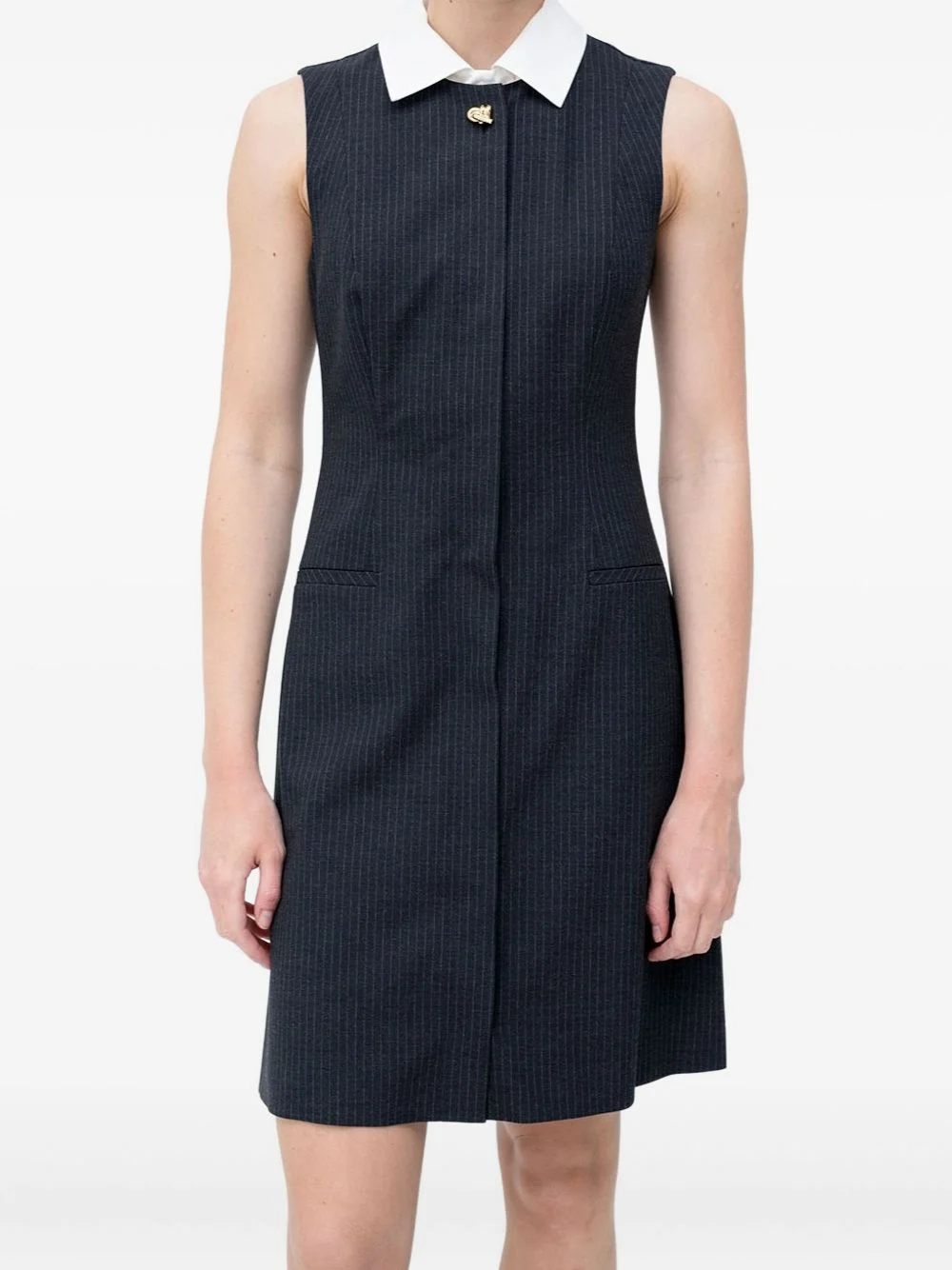pinstripe collared mini dress Highlights - Blue - Pinstripe pattern - Collared - Sleeveless - Front pockets Imported Composition Fabric 100% Washing instructions Read Manufacturer Guidelines