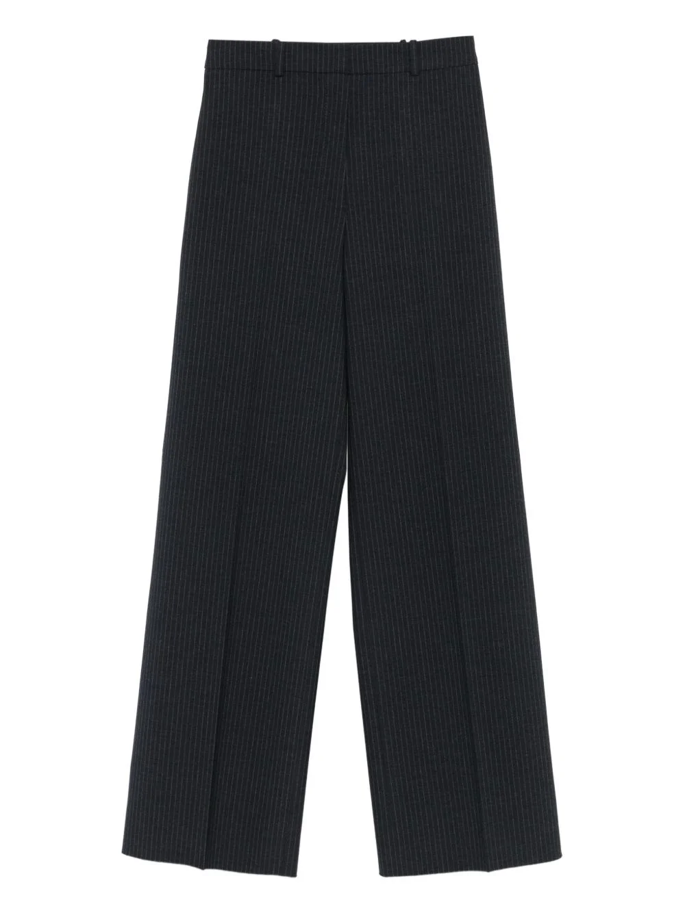 pinstripe straight-leg trousers Highlights - Black - Concealed front fastening - Pinstripe pattern - Straight leg - Mid-rise waist Imported Composition Polyester 62%, Viscose 33%, Elastane 5% SIZE & FIT Model measurements Height 5 ft 10 in(1.78 m) Bust/Chest 31.49 in(80 cm) Hips 37 in(94 cm) Waist 23.62 in(60 cm) Washing instructions Dry Clean Only