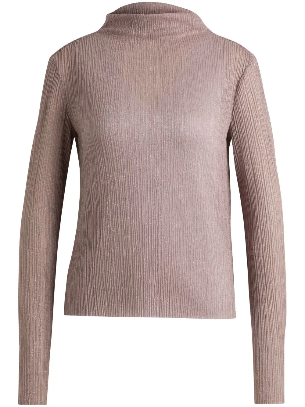 plisse-effect blouse Highlights - Light pink - Plisse effect - Semi-sheer construction - Boat neck - Mock neck - Long sleeves - Straight hem Imported Composition Polyester 67%, Fabric 33% Washing instructions Read Manufacturer Guidelines