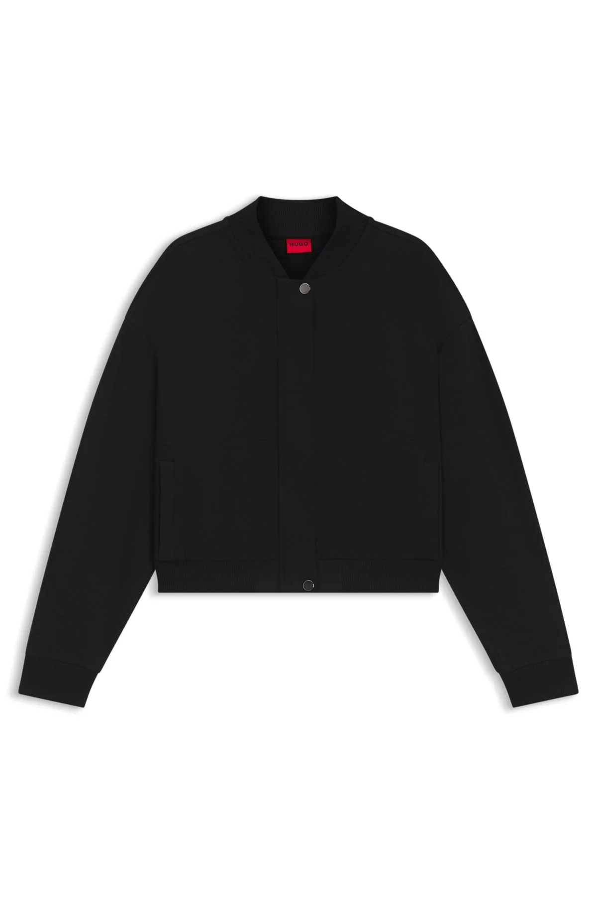 SIZE AND FIT The model wears a size S and is 5'10" tall with a, 32" chest, 24" waist and 35" hips. DETAILS Dakure - 50542743 Made in smooth Punto Milano jersey for comfort, this HUGO Womenswear jacket is a casual must-have. Concealed closure Subtle rear stacked-logo trim. Relaxed fit QUALITY & CARE INSTRUCTIONS Do Not Bleach Do Not Dry Clean Quality: 71% Viscose, 25% Polyamid, 4% Elastane Do Not Tumble Dry Cold, gentle machine wash; reduced spin speed. Iron Low Heat