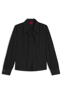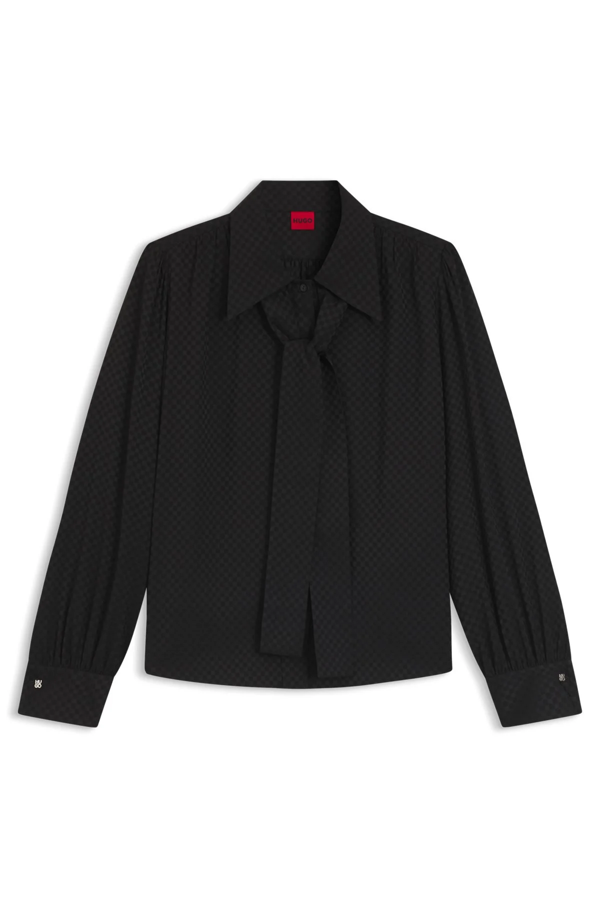 REGULAR-FIT BLOUSE IN CHECKERBOARD JACQUARD WITH TIE NECKLINE