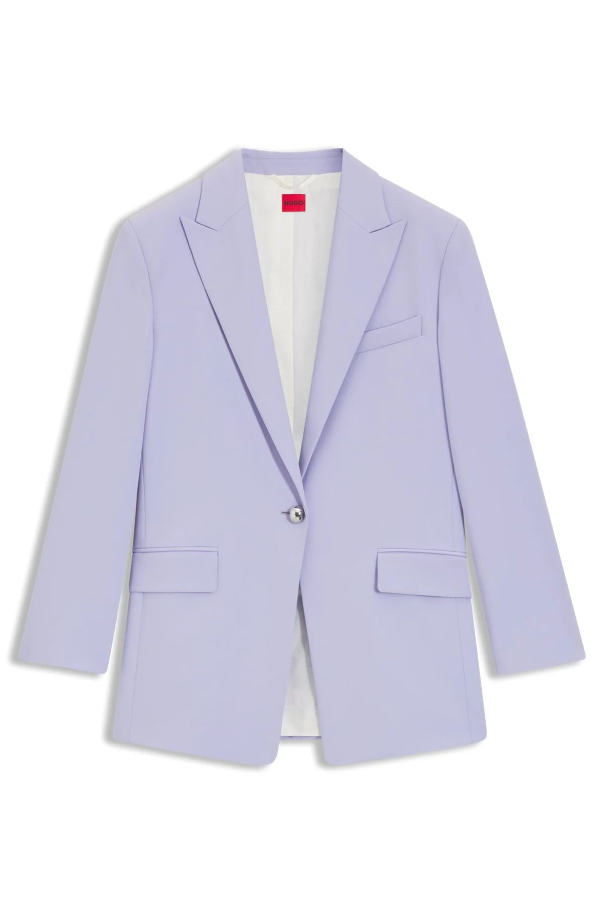 SIZE AND FIT The model wears a size 4 and is 5'8" tall with a, 31" chest, 23" waist and 34" hips. DETAILS Made with generous stretch for comfort, this HUGO Womenswear blazer is a versatile option. Clean single-button styling and an oversize fit. Relaxed fit Peaked lapels Fastening top: Button closure Number of buttons: 1 Welt chest pockets Pockets top: Flap pockets No cuffs Back vent Fully lined Fit back length: 75 cm (30 inches) Azali - 50554026 QUALITY & CARE INSTRUCTIONS Do Not Tumble Dry Do Not Wash Material: 64% Polyester, 31% Viscose, 5% Elastane, Lining: 55% Polyester, 45% Viscose, Sleeve lining: 100% Polyester Do Not Bleach Iron Low Heat Reduced Dry Clean