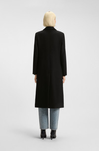 SIZE AND FIT The model wears a size 4 and is 5'10" tall with a, 32" chest, 24" waist and 35" hips. DETAILS Ideal for throwing over everyday looks, this HUGO Womenswear coat has an effortless relaxed fit. Rich in wool with a single-breasted closure. Monogram rivet. Relaxed fit Reverse lapels Number of buttons: 2 Pockets top: Single welt pocket No cuffs Back vent Fully lined Long length Fit back length: 120 cm (47 inches) Mojeni - 50547691 QUALITY & CARE INSTRUCTIONS Do Not Wash Do Not Bleach Quality: 70% Wool, 20% Polyester, 10% Polyamid, Lining: 55% Polyester, 45% Viscose, Sleeve lining: 55% Polyester, 45% Viscose, pocketing: 100% Cotton Reduced Dry Clean Iron Low Heat Do Not Tumble Dry