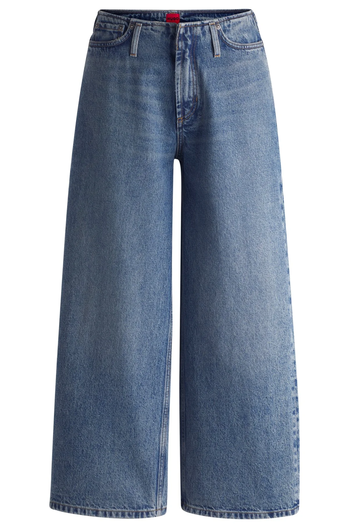 SIZE AND FIT The model wears a size 27/32 and is 5'8" tall with a, 31" chest, 23" waist and 34" hips. DETAILS Gitane - 50530299 With a clean waistband and cropped, relaxed fit, these HUGO Womenswear jeans add authentic character to casual looks. Mid-blue rigid denim. Grindings on hem. This product’s raw material is derived from regenerative agriculture: an approach focused on preservation and restoration that aims to increase biodiversity, preserve water quality and improve soil health while absorbing CO2. Regenerative agriculture also promotes animal welfare and fair working conditions for farmers. Relaxed fit Regular rise Zip closure Pockets bottom front: Ticket pocket Wide leg Pockets bottom back: Patch pocket Cropped QUALITY & CARE INSTRUCTIONS Iron Medium Heat Do Not Tumble Dry Do Not Bleach Quality: 100% Cotton, pocketing: 57% Polyester, 40% Cotton, 3% Elastane Machine Wash Cold Gentle Do Not Dry Clean