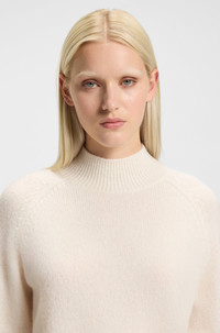 SIZE AND FIT The model wears a size S and is 5'10" tall with a, 32" chest, 24" waist and 35" hips. DETAILS With its mock neck and extended ribbed cuffs, this relaxed-fit HUGO Womenswear sweater makes a cozy layer. Wool blend with alpaca. Embroidered logo. Relaxed fit Neckline: Mock Neck Long sleeves Surpio - 50548251 QUALITY & CARE INSTRUCTIONS Quality: 52% Wool, 26% Polyamid, 22% Alpaca Hand Wash Only Do Not Bleach Iron Low Heat Dry Clean Only Do Not Tumble Dry