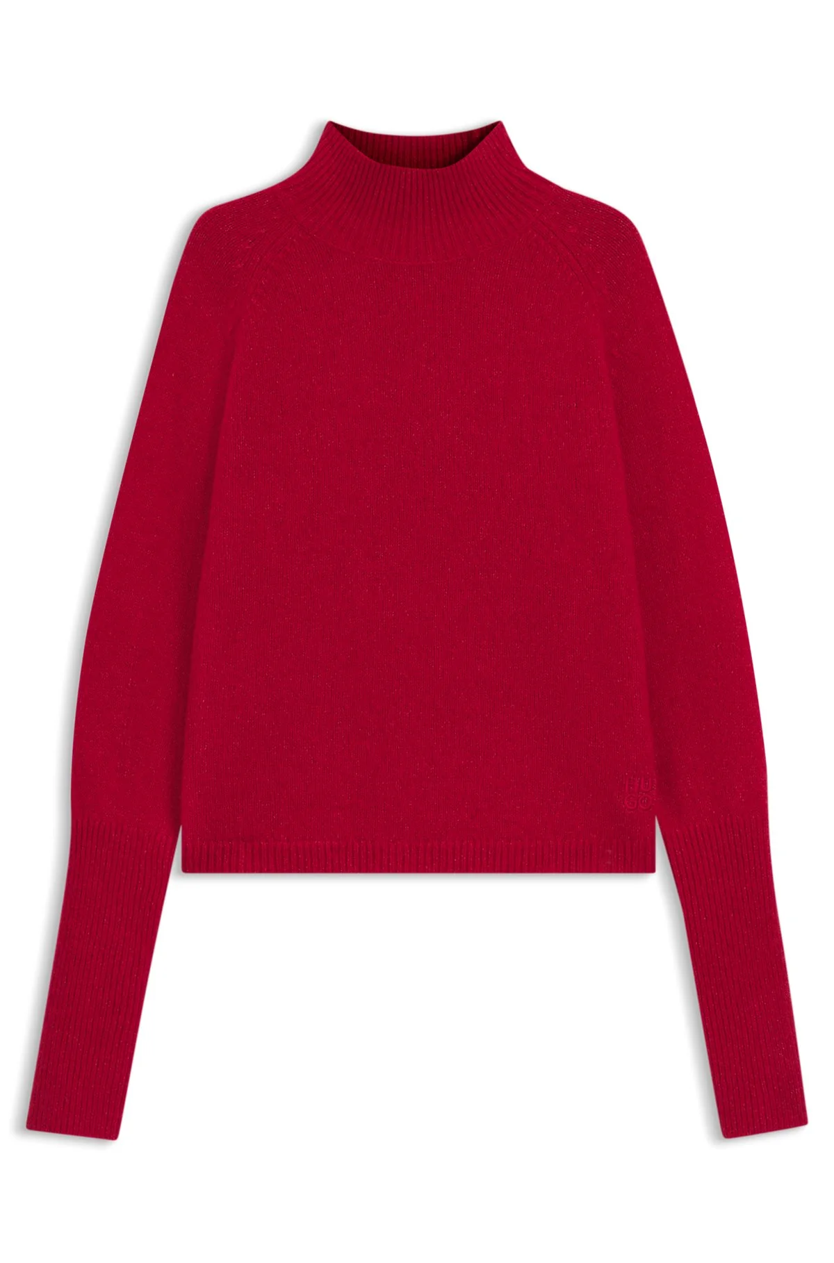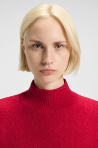 SIZE AND FIT The model wears a size S and is 5'10" tall with a, 32" chest, 24" waist and 35" hips. DETAILS With its mock neck and extended ribbed cuffs, this relaxed-fit HUGO Womenswear sweater makes a cozy layer. Wool blend with alpaca. Embroidered logo. Relaxed fit Neckline: Mock Neck Long sleeves Surpio - 50548251 QUALITY & CARE INSTRUCTIONS Quality: 52% Wool, 26% Polyamid, 22% Alpaca Hand Wash Only Do Not Bleach Iron Low Heat Dry Clean Only Do Not Tumble Dry