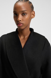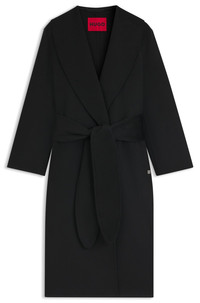 SIZE AND FIT The model wears a size 4 and is 5'8" tall with a, 31" chest, 23" waist and 34" hips. DETAILS With its relaxed fit and shawl collar, this belted HUGO Womenswear coat is ideal for throwing over elegant looks. Double-faced fabric with soft wool. Relaxed fit Shawl collar Fastening top: Belted closure Number of buttons: 2 Pockets top: Seam pocket No cuffs No vent Unlined Long length Fit back length: 120 cm (47 inches) Mecami-1_DF - 50546753 QUALITY & CARE INSTRUCTIONS Material: 82% Polyester, 18% Wool, Lining: 100% Polyester Reduced Dry Clean Do Not Wash Do Not Tumble Dry Iron Low Heat Do Not Bleach