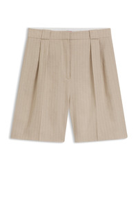 SIZE AND FIT The model wears a size 4 and is 5'10" tall with a, 33" chest, 23" waist and 34" hips. DETAILS In a flattering relaxed fit with double pleats, these HUGO Womenswear shorts carry a sparkly pinstripe for a contemporary look. Relaxed fit Regular rise Hook and zip closure Crease Pockets bottom front: Side pockets Unlined Hamonu - 50559853 QUALITY & CARE INSTRUCTIONS Reduced Dry Clean Do Not Bleach Do Not Tumble Dry Material: 81% Cotton, 17% Linen, 1% Polyamid, 1% Metallizing, pocketing: 100% Cotton Do Not Wash Iron Low Heat